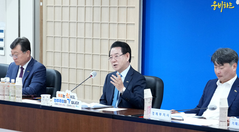 김영록 지사는 이날 도청 서재필실에서 실국 정책회의를 통해 “지난해 12월부터 시작된 국가적 혼란과 비상상황을 극복하고, 경제도 다시 회복을 해서 새로운 대한민국, 진짜 대한민국으로 가야 한다”며 “전남도선거관리위원회와 손발을 잘 맞춰 도민의 대선 투표 참여 홍보활동에 노력을 기울여달라”고 강조했다.