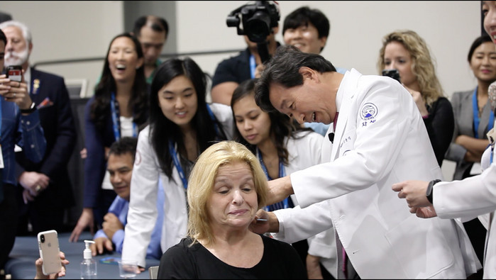 | ▲ 자생의료재단 신준식 명예이사장이 MD와 DO 등 국 의료계 전문가들을 대상으로 침치료 시연을 하고 있다. |