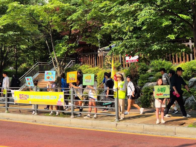 ◦ “학생들의 안전한 등하굣길을 위해 천천히, 경적을 삼가주세요.”학교 앞과 로타리에서 등학교길 운전자 계몽 캠페인 열어