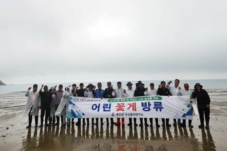 옹진군 수산종자연구소에서 약 1개월 가량 사육한 어린 꽃게는 전염병검사를 마친 1cm이상의 건강한 수산종자로 대청면장, 어촌계장, 유관기관, 지역어업인 등 약 20여명이 참석한 가운데, 서식 최적지인 지두리 해변에 방류하였다.