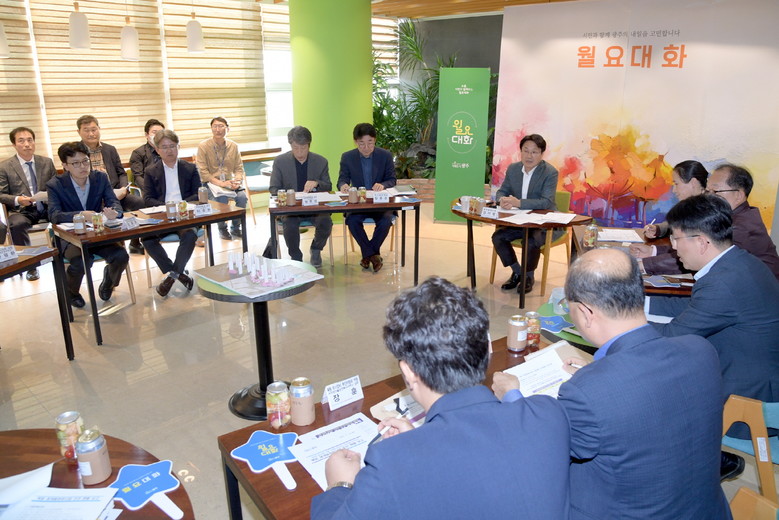 강기정 광주광역시장은 지난 30일 오후 시청 다목적홀에서 ‘북동재개발 바람직한 개발방향’을 주제로 ‘34번째 월요대화’를 열었다.