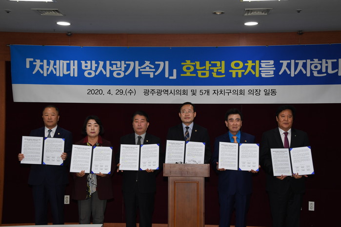 광주시의회 김동찬 의장과 5개 자치구 의회 의장(동구의회 박종균, 서구의회 강기석, 남구의회 조기주, 북구의회 고점례, 광산구의회 배홍석)은 29일, ‘4세대 원형 방사광가속기’의 호남권 유치를 지지하는 성명을 발표했다.