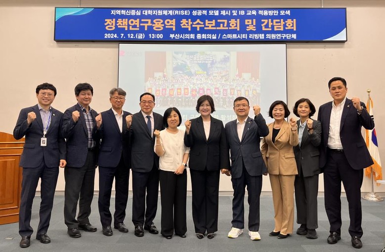 임말숙 대표 의원은 “이번 연구 주제는 교육적 측면에서 부산형 스마트시티 구현을 어떻게 할 수 있을까 하는 고민에서 출발했다”며, “2022년 진행한 용역 결과와 저출생에 따른 인구 변화 속에서 지역과 대학이 처한 현실을 극복하기 위한 방안 중 하나인 RISE가 상당히 중요하다는 점에서 이 연구 방향을 설정하게 되었다”고 했다. 더불어 “성공적인 RISE 모델 구축을 위한 방안 중 하나로 IB교육 방식에 대한 심도 있는 분석과 정책적 활용 방안을 제시해 주시기 바란다”고 당부했다.
