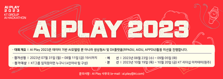KT IT부문 IT전략기획담당 정찬호 상무는 “올해는 본선에서 생성형 AI를 활용한 자율주제로 해커톤을 진행하는 새로운 시도인 만큼 사내 구성원의 관심이 더욱 집중될 것으로 기대된다”면서 “다양한 사내 DX플랫폼을 활용해 AI/RPA 역량을 키우는 것 뿐만 아니라 최종결과를 APPDU를 통해 구현해야 하기에 UI/UX 측면에서도 결과를 기대하고 있으며, 앞으로도 KT가 디지털 플랫폼 기업으로 더 나은 IT 개발 문화와 기술 경쟁력을 갖출 수 있도록 해커톤을 지속해 나갈 계획”이라고 밝혔다.