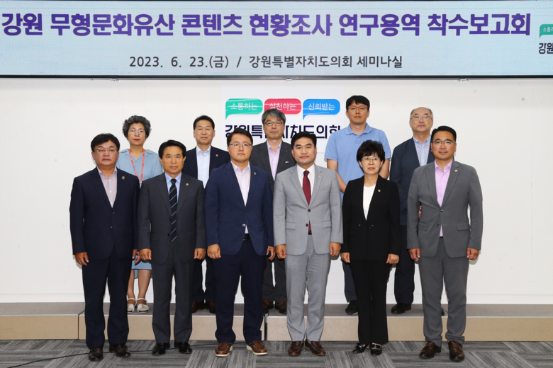 [강원도 세계타임즈=김민석 기자] 강원특별자치도의회 강원문화유산 콘텐츠 발굴 연구회는 6월 23일(금요일) 강원특별자치도의회 세미나실에서 ‘강원 무형문화유산 콘텐츠 현황조사 연구용역’에 관한 용역 착수보고회를 가졌다.