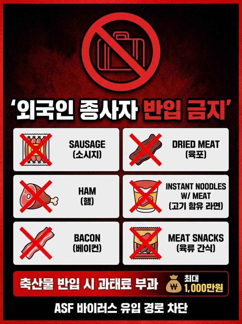 인위적 유입 차단을 위해 불법 수입축산물 등 오염 우려 물품의 농장 내 반입과 보관을 금지하는 등 11개 행정명령과 8개 방역기준도 시행한다. 모든 양돈농장은 농장종사자 현황을 관할 시군에 제출해야 하며, 발생국 축산물을 농장 내로 들여오는 행위는 엄격히 제한된다.
