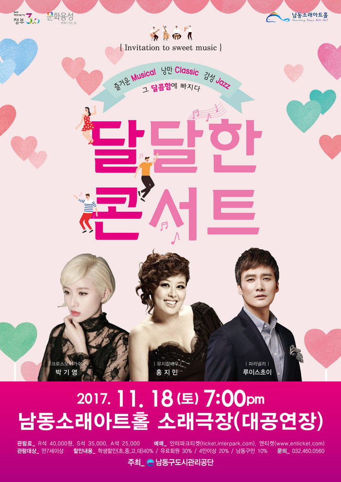 [남동구=세계타임즈 심동윤 기자] 오는 11월 18일(토), 인천 남동소래아트홀에서 박기영, 홍지민, 루이스초이가 출연하는 <달달한 콘서트>가 개최된다.