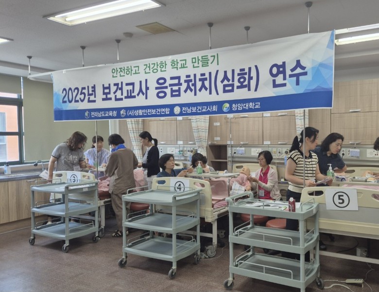 [전남 세계타임즈=우덕현 기자] 전라남도교육청(교육감 김대중)은 5일, 7일 양일간 순천 청암대학교에서 보건교사 135명을 대상으로 전문성 함양을 위한 실습 중심의 연수를 열고, 학교 응급상황 대응 역량 강화에 나섰다.