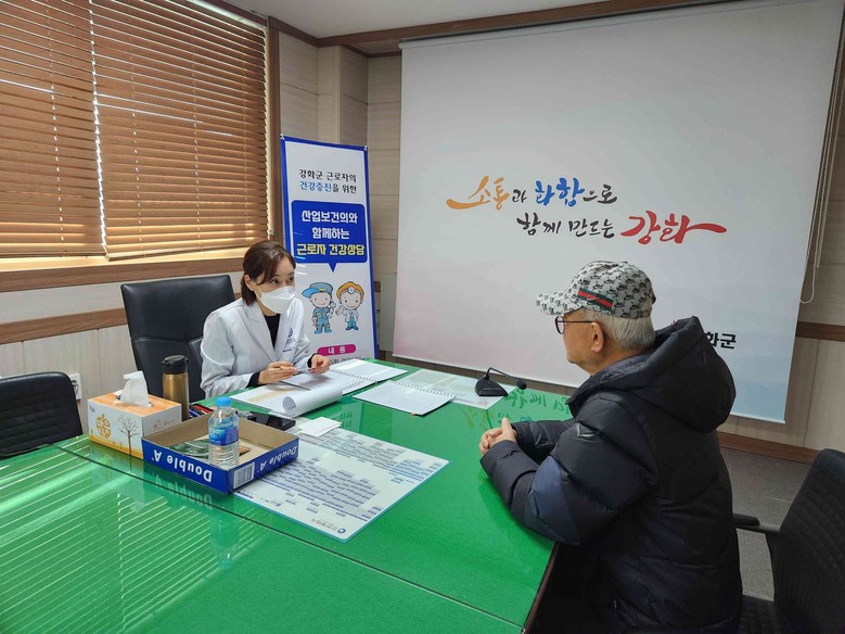 [강화군 세계타임즈=심하린 기자] 강화군(군수 박용철)은 지난 3일 야간근로자, 재활용 선별 작업자, 주민 대피시설 근로자 등 현업근로자를 대상으로 산업보건의와 함께 2025년 하반기 건강상담을 진행했다.