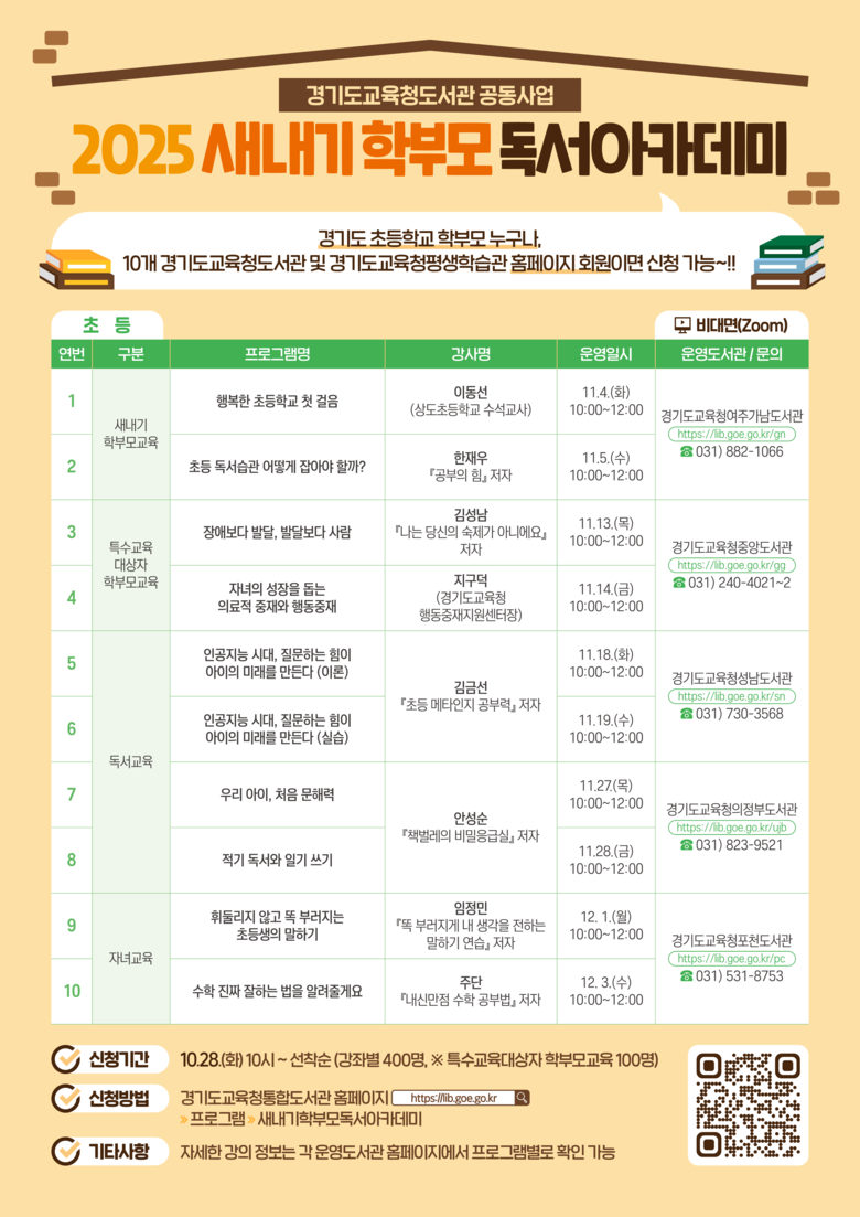 프로그램에 참여를 희망하는 학부모는 28일부터 경기도교육청통합도서관 누리집(https://lib.goe.go.kr)에서 신청할 수 있다.