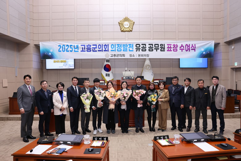 [고흥군 세계타임즈=우덕현 기자] 고흥군의회(의장 류제동)는 12월 19일 제342회 제2차 정례회 폐회 후 본회의장에서 2025년도 4분기 의정발전 유공 공무원 표창 수여식을 개최했다.