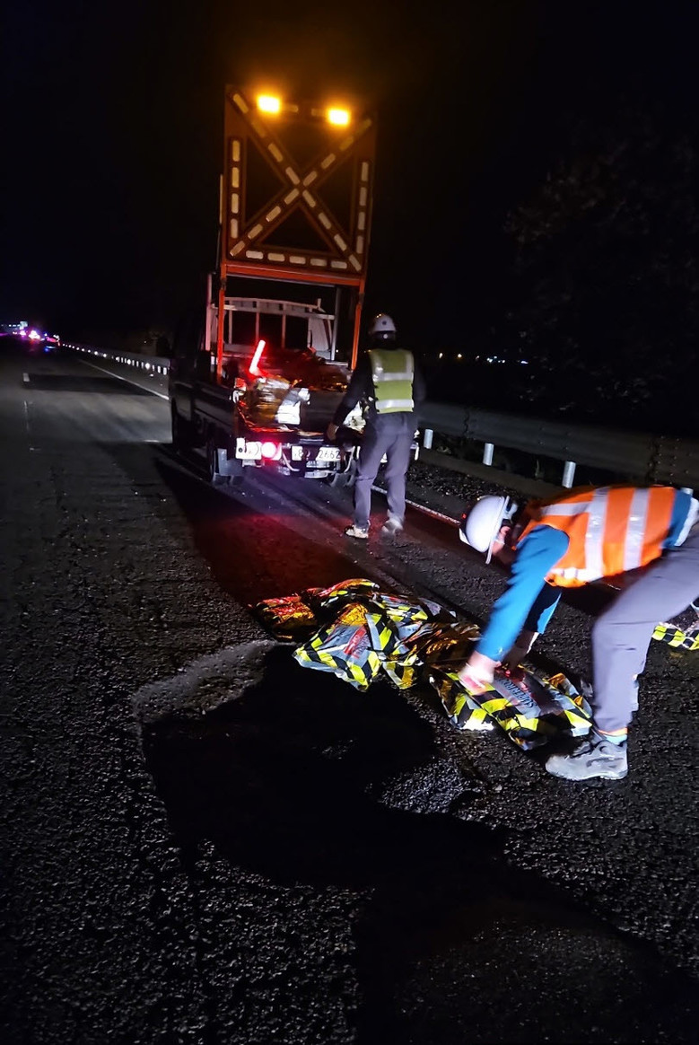 | ▲ 야간 보수 작업(대형 포트홀) |