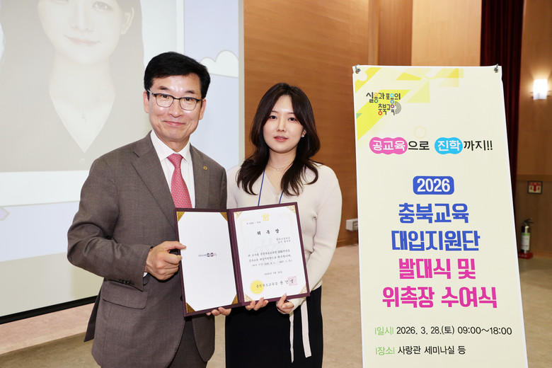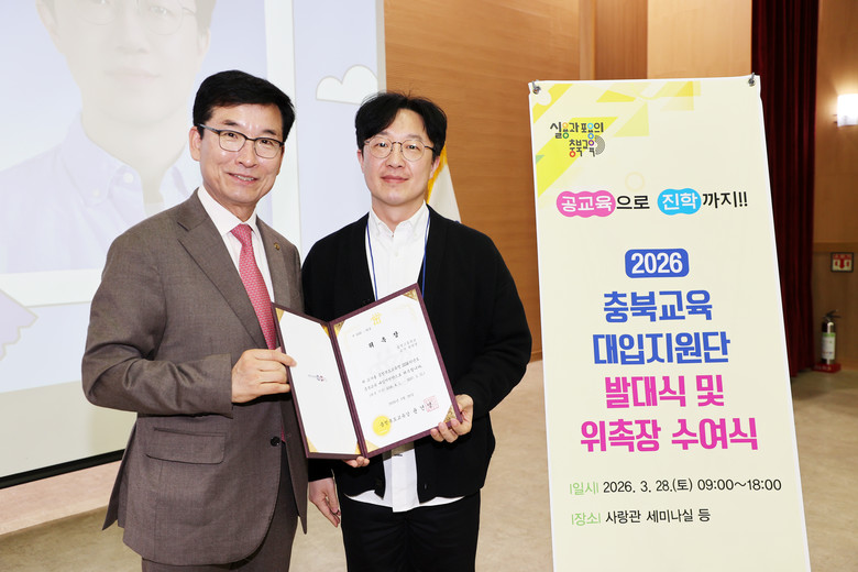 [충북 세계타임즈=이현진 기자] 충청북도교육청(교육감 윤건영)은 28일(토) 14시, 충북교육청 사랑관 세미나실에서 2026년 충북교육 대입지원단 발대식 및 위촉장 수여식을 개최했다.