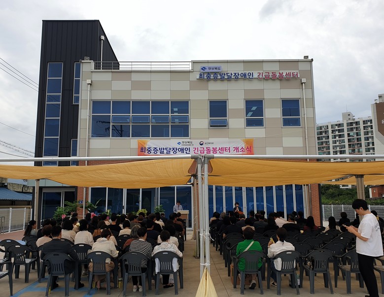 - 복지부 ‘최중증 발달장애인 긴급돌봄 사업’공모 선정, 19일 경산서 개소식 가져 - [경북 세계타임즈=한윤석 기자] 경상북도는 5월 보건복지부에서 공모한 ‘최중증 발달장애인 긴급돌봄 사업’에 선정되어, 19일 경산에서 ‘최중증 발달장애인 긴급돌봄센터’ 개소식을 열고, 도내 발달장애인을 위한 돌봄 공백 지원 체계 마련에 나섰다.