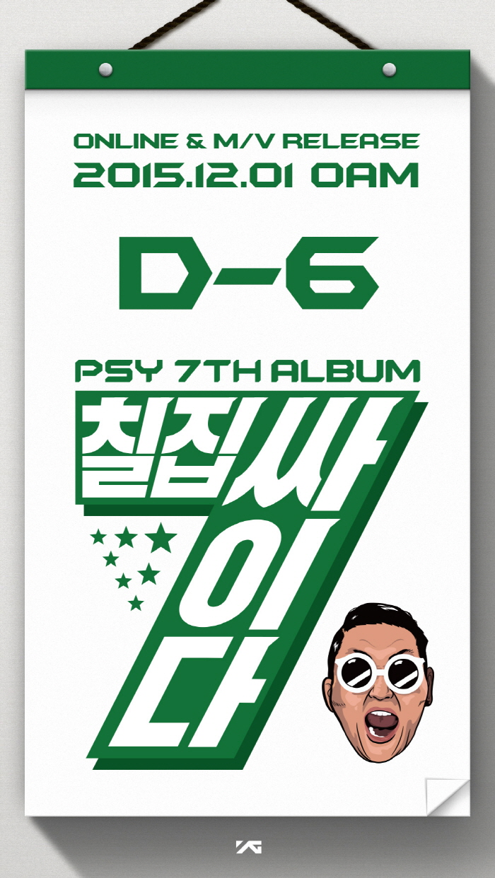 YG엔터테인먼트는 25일 0시 공식블로그를 통해 ‘칠집싸이다’라는 글자가 새겨진 숫자 '7'과 일곱 개의 별, 익살스러운 싸이 캐리커처 이미지가 담긴 포스터를 게재하며 이같이 밝혔다.