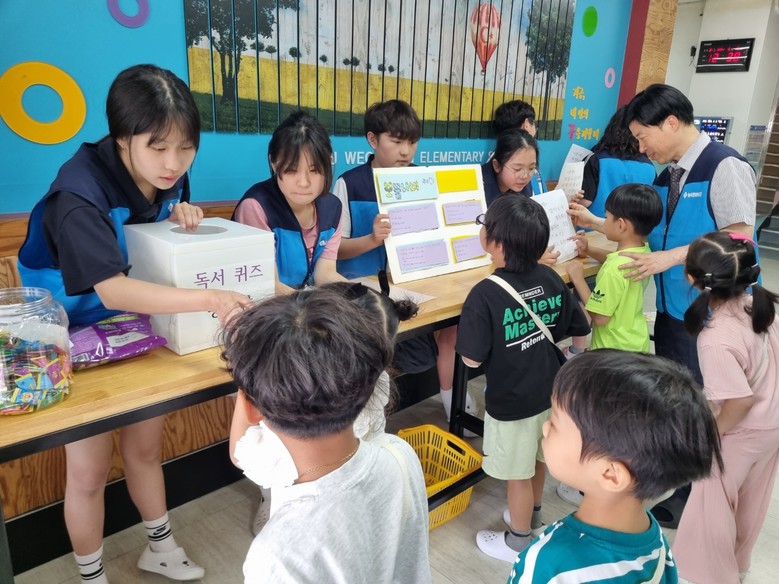 37명으로 구성된 ‘놀이 문해력 지원단’은 4월부터 6월까지 화요일 점심시간에 급식실 앞에서 문해력 캠페인과 독서 퀴즈를 진행했다. 지원단 학생들이 직접 문제를 출제하고 기획한 이 활동에 전교생의 80%가 참여했다.