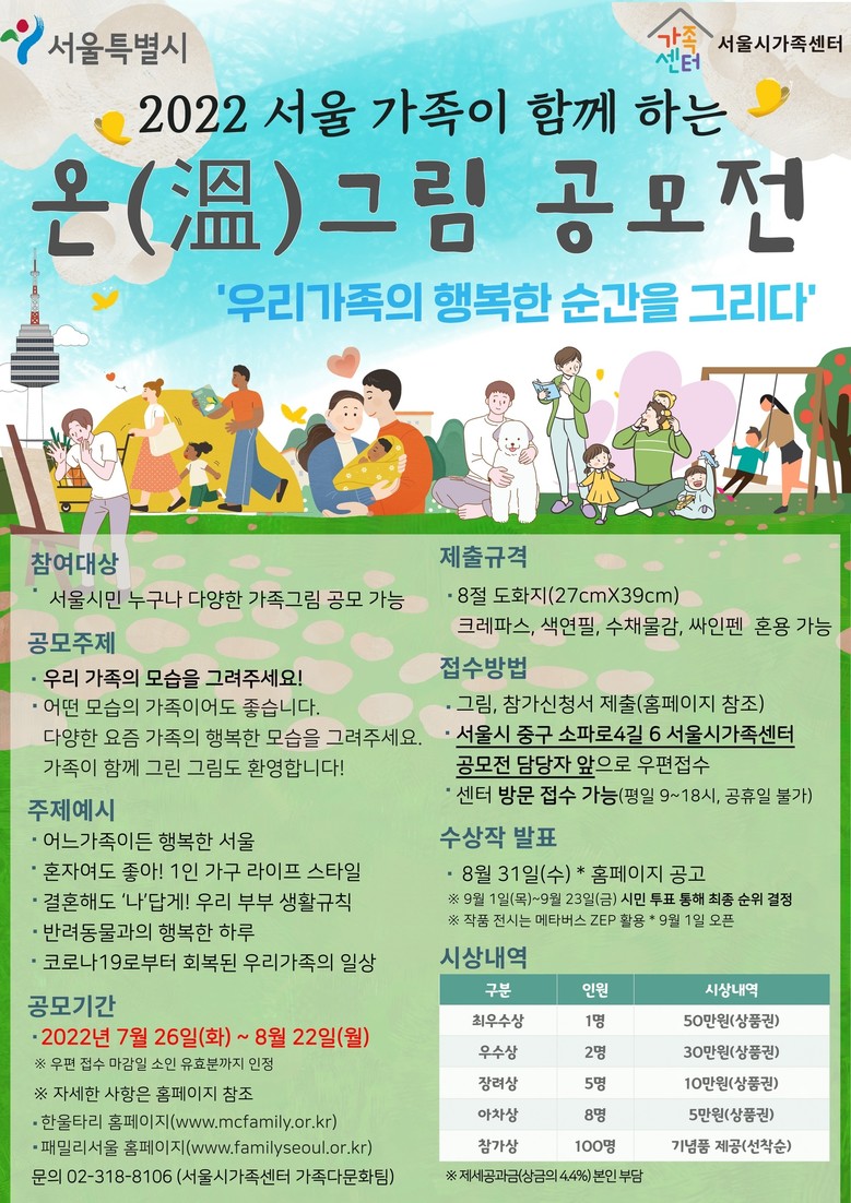 - 서울시, 다양한 요즘 가족의 행복한 모습을 주제로 그림 공모전 개최(7.26.~8.22.)