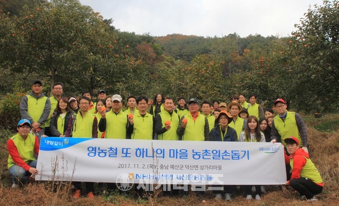 [세계타임즈 이채봉 기자]NH농협생명(대표 서기봉)이 11월 2일(목) 약속 실천을 위해 또 한 번 농촌마을을 찾았다. 김희석 자산운용총괄부사장과 직원 40여명은 ‘또 하나의 마을’ 결연을 맺은 충남 예산군 덕산면 상가리를 찾아 제철 맞은 감 수확을 도왔다.
