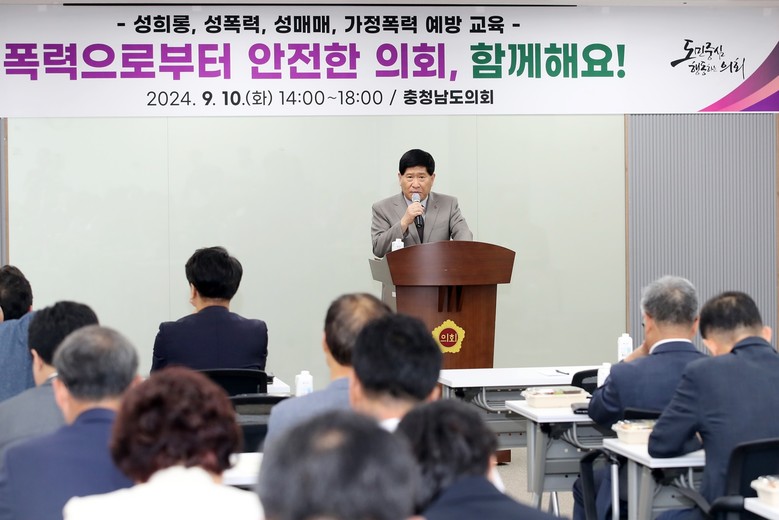 홍성현 의장(천안1‧국민의힘)은 “이번 교육은 공직 사회 내에서 발생할 수 있는 폭력 문제를 사전에 방지하고, 올바른 대응 방안을 숙지하는 데 큰 도움이 될 것”이라며 “모든 도의원과 공무원이 폭력 예방의 중요성을 인식하고, 보다 안전하고 건강한 근무 환경을 조성하기 위해 지속적으로 노력해달라”고 당부했다.