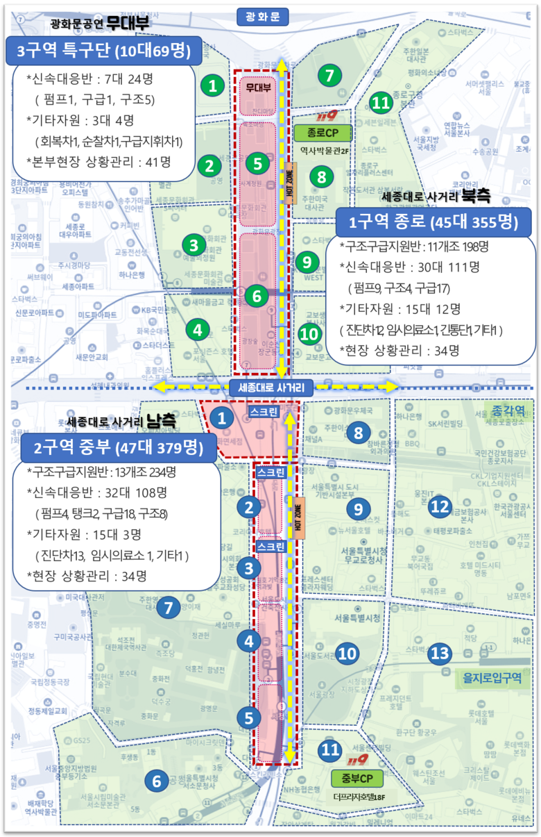 행사 전날인 20일(금) 밤에는 서울시 재난안전실장(시민안전대책본부장)과 시민안전대책본부 8개 실무반장이 현장에 투입돼 상황을 최종 점검했다.
