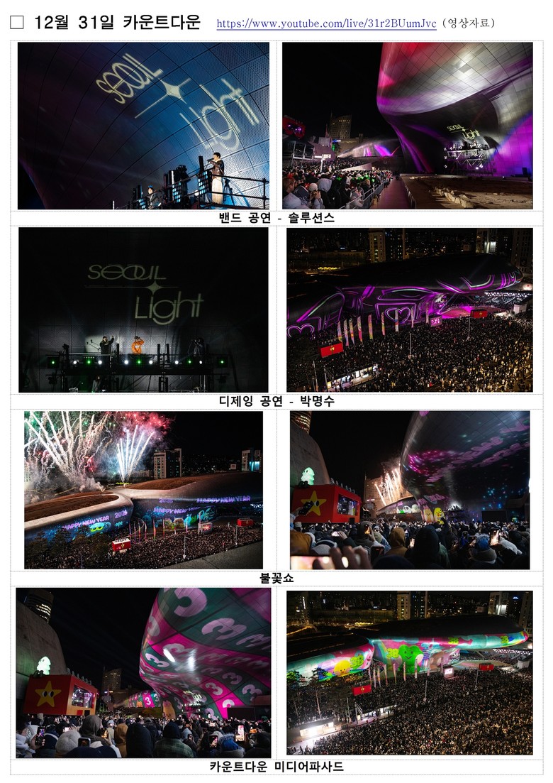 특히 행사 마지막 날인 31일에는 세계 최대 규모의 비정형 미디어파사드와 불꽃 연출이 결합된 새해맞이 카운트다운에 약 8만 7천 명이 운집했으며, 8차선 도로까지 인파가 이어져 2025년의 마지막 밤을 화려하게 수놓았다.