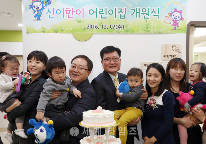 ‘신한 신이한이 강북 어린이집’은 보육실, 도서실, 실내외 놀이터 등의 시설과 양질의 교육프로램을 준비해 만 1세부터 5세까지 49명의 직원 자녀들을 건강하게 보육할 수 있는 환경을 구비했으며, 개원식은 신한은행 윤승욱 부행장과 유주선 노동조합 위원장, 푸르니보육지원재단 김온기 대표 및 학부모 등 30여명이 참석한 가운데 진행됐다.