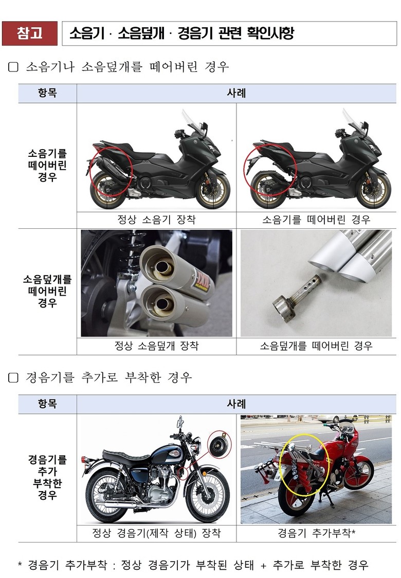 주요 단속 내용은 △배기 및 경적 소음에 대한 소음허용기준 준수 여부 △소음기 및 소음덮개 탈거 여부 △이륜자동차 불법개조 등이며, 단순 외관 점검을 넘어 실제 소음 수치를 측정해 시민들이 체감할 수 있는 소음저감 효과를 이끌어 낼 계획이다.
