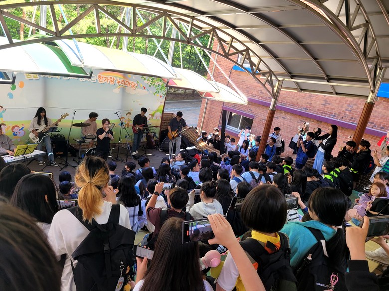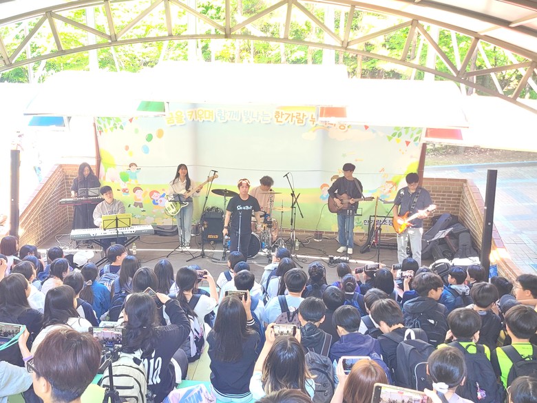 [파주시 세계타임즈=송민수 기자] 한가람초(교장 이강수)는 가정의 달 5월, 스승의날을 맞아 학생과 선생님 모두 함께 즐길 수 있는 하굣길 스쿨콘서트를 진행하였다. 김포 학교에 재직 중인 선생님으로 구성된 교사밴드의 연주에 맞춰 학생들과 함께 노래 부르고, 환호하며 하굣길에 즐거운 음악선물을 선사했다.