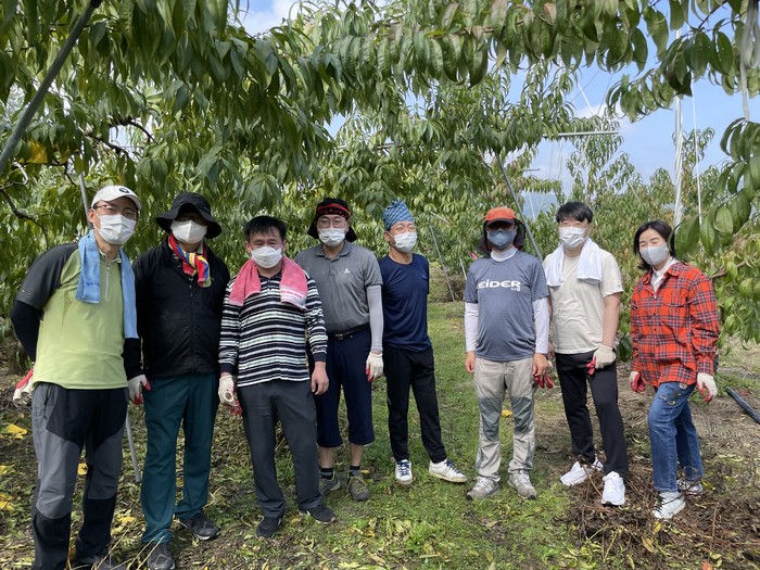 이날 교육위원회 의원과 직원들은 복숭아 전지목 수거 등에 일손을 보태며 구슬땀을 흘렸다.