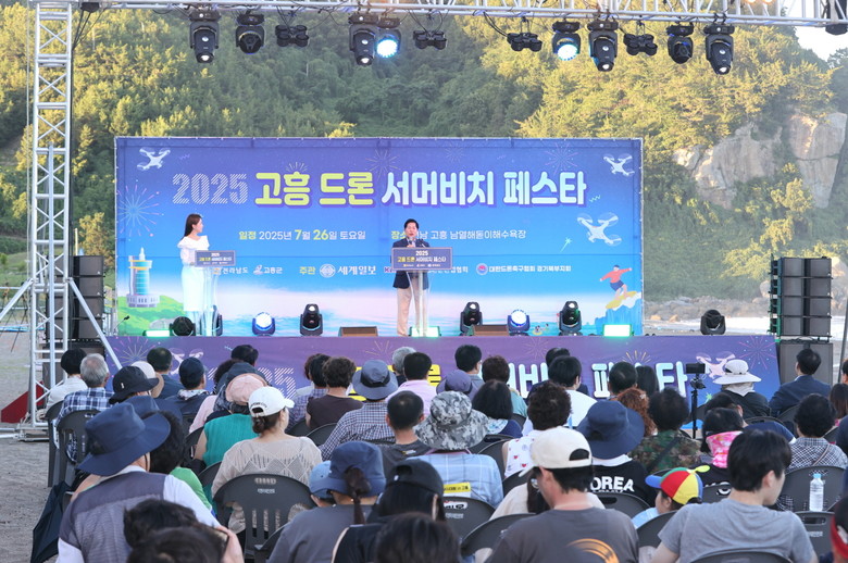 [고흥군 세계타임즈=우덕현 기자] 고흥군(군수 공영민)은 지난 7월 26일 영남면 남열해돋이해수욕장 일원에서 개최한 ‘2025 고흥 드론 서머비치 페스타’에 3,000여 명의 관광객과 군민이 참여한 가운데 성황리에 마무리됐다고 밝혔다.