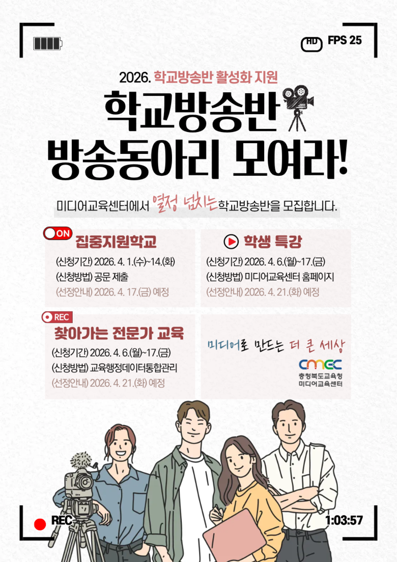 이찬동 교육연구정보원장은 “학교 방송활동은 학생이 콘텐츠를 기획하고 제작하는 과정에서 협업과 소통 역량을 기르는 교육 활동”이라며 “현장 요구를 반영한 맞춤형 미디어교육을 지속 확대하겠다.”라고 말했다.