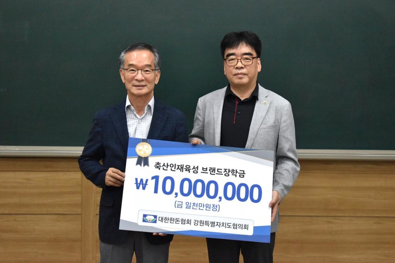 한편, 도‧한돈 장학금은 2022년부터 매년 강원특별자치도와 대한한돈협회가 각 1,000만 원씩 기금을 공동 출연하여 운영 중인 제도로, 도내 축산 관련 고등학교 및 대학교 재학생을 대상으로 최대 100만 원의 장학금을 지급하고 있으며, 올해까지 총 100여 명의 축산 인재를 선발·지원해 왔다.