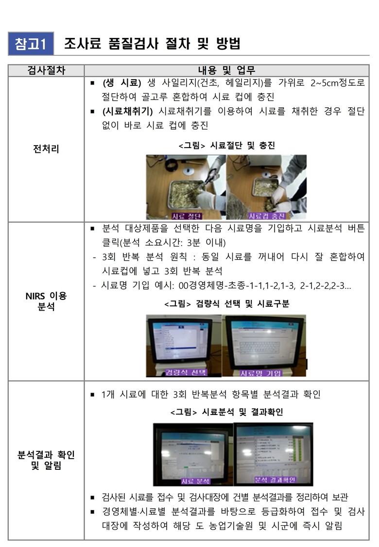** 품질등급 판정기준: (동계) 수분, 조단백 측정, 4단계 등급판정(건초ㆍAㆍBㆍ등외)