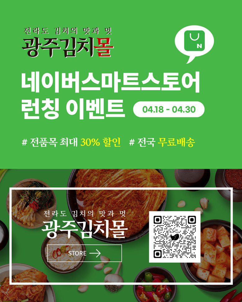 소비자는 네이버 검색창에 ‘광주김치몰’을 입력하거나 정보무늬(QR코드)로 바로 접속할 수 있다. 기존 운영 중인 광주김치몰 누리집(www.k-kimchi.kr)에서도 할인행사를 동시 진행하지만, 판매정책에 따라 일부 가격 차이가 발생할 수 있다.