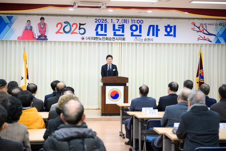 | ▲ 노관규 순천시장이 순천시노인회 신년인사회에 참석해 신년 인사를 하고 있다 |
