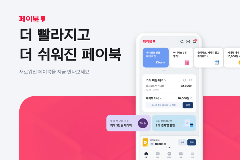 페이북은 지난 2018, 2021년 두 번의 대대적인 고도화 작업을 통해 기존 결제 중심 앱에서 현재 자산 관리, 앱테크(앱+재테크) 등 다양한 금융서비스를 지속 추가하며 고객 니즈를 반영했다. 또한 사용자 환경·경험(UI·UX) 중심의 업그레이드를 통해 2021년 개편 직후 가입자 수가 61% 증가하며 현재는 유효회원 수 1100만여명이 애용하는 금융앱으로 거듭났다.