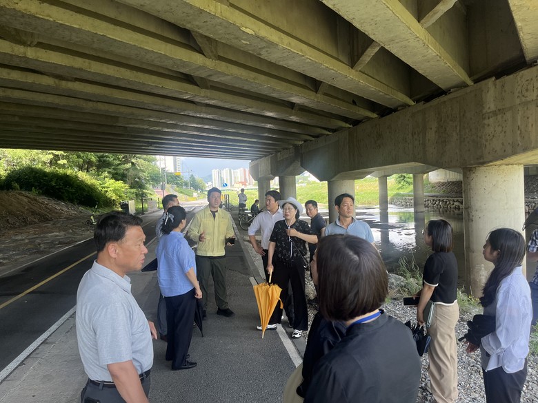 이번 일정은 신방공원 한라비발디아파트 구간과 서부역사교 ~ 만남의교 구간을 중심으로 현장 여건을 직접 점검하고, 도시재생어울림센터에서 하천과·건축과·정원녹지과 등 관계 부서와의 간담회를 통해 실효성 있는 개선방안을 모색하는 자리로 마련되었다.