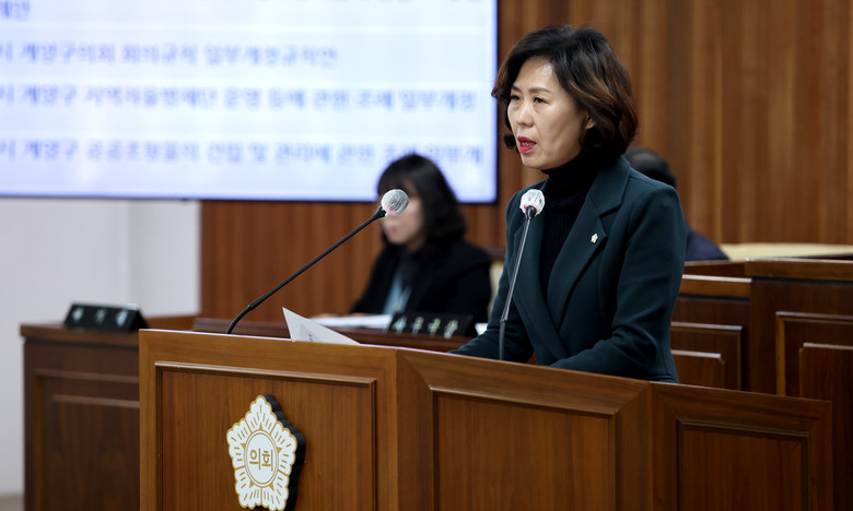 [계양구 세계타임즈=심하린 기자] 인천 계양구의회 문미혜 의원이 지난 25일 열린 제258회 임시회 제2차 본회의에서 ‘유기동물보호소 환경개선 및 유기동물 보호 관리 지원 촉구 건의안’을 발의했다.