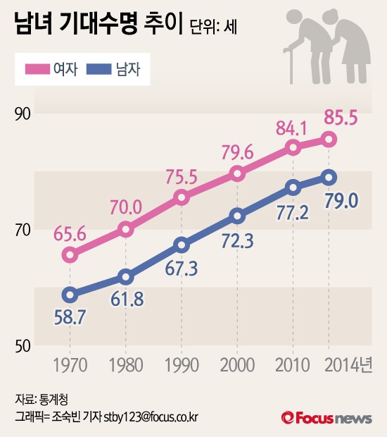 [세계타임즈 이현재 기자] 지난해 한국인의 기대수명이 남성은 79년, 여성은 85.5년으로 나타났다.