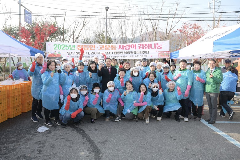 앞서 전동면·고운동 직능단체연합은 지난 17일 김장에 사용할 배추를 수확하고, 19일에는 양념 버무리기 작업을 진행하며 김장 준비에 정성을 기울였다.