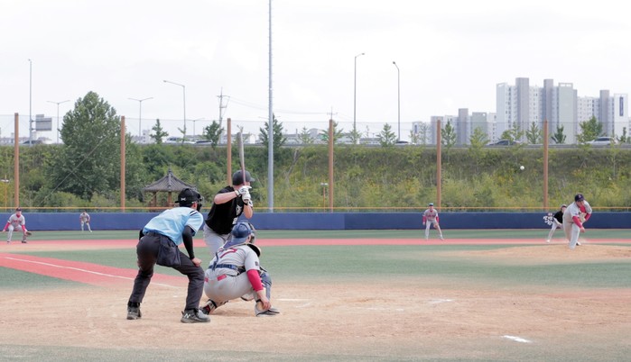 | ▲사회인야구 동호인들이 야구 경기를 즐기고 있다. |