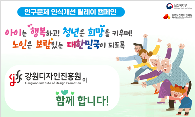 [강원도 세계타임즈=김민석 기자] 최인숙 강원디자인진흥원장(이하 ‘원장’)이 저출산·고령화 등 인구 구조 변화에 대한 사회적 인식을 개선하기 위해 3월 25일 ‘인구문제 인식 개선 릴레이 캠페인’에 동참했다.