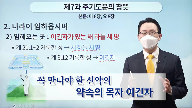 | ▲25일 신천지 공식 유튜브 채널을 통해 시몬지파 서대문교회 이정수 담임강사의 ‘주기도문의 참 뜻’을 주제로 한 ‘구약 신약 장별 계시 증거 세미나’ 제7과 강의가 스트리밍되고 있다. |
