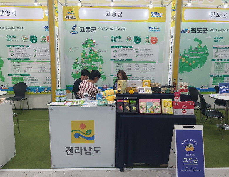 고흥군은 귀농귀촌 홍보 부스를 운영하며 예비 귀농귀촌인에게 풍부한 귀농 기초 정보를 제공하고, 귀농어귀촌 창업자금 융자 지원사업을 비롯한 다양한 지원사업들과 도시민 대상 찾아가는 귀농어 귀촌 설명회, 도시민 팸투어 등 맞춤형 프로그램 등 귀농정책과 지원 정보를 안내했다.