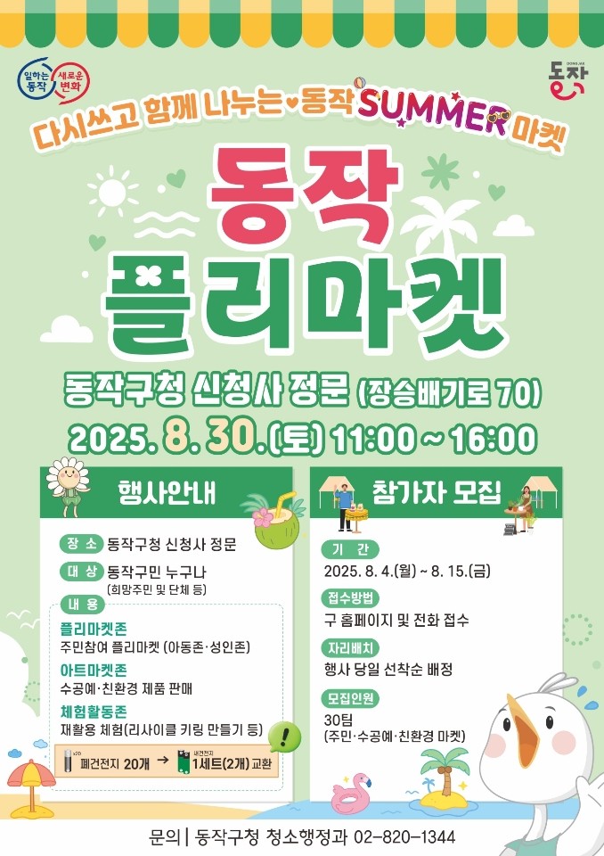 박일하 동작구청장은 “동작 플리마켓은 주민들이 직접 물품을 나누며 재활용 문화와 나눔의 가치를 실천하는 축제”라며 “가족과 함께 다양한 마켓과 체험을 즐기며 뜻깊은 시간 보내시길 바란다”라고 말했다.
