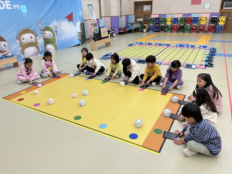 '로봇-DAY'는 재원하고 있는 유아를 대상으로 유치원 강당에서 5세 드론 자율주행, 4세 태블릿을 활용한 블록코팅, 3세 로봇앱을 활용한 로봇댄스 등 각 연령의 발달수준에 맞게 원리를 이해하고 직접 조작해 보며 체험해 보는 활동으로 진행하였다. 올해 6회 드론 및 자율주행 체험, 2회 코딩교육으로 계획되어 있었고 이중 이번이 마지막 회차로 진행되었다.