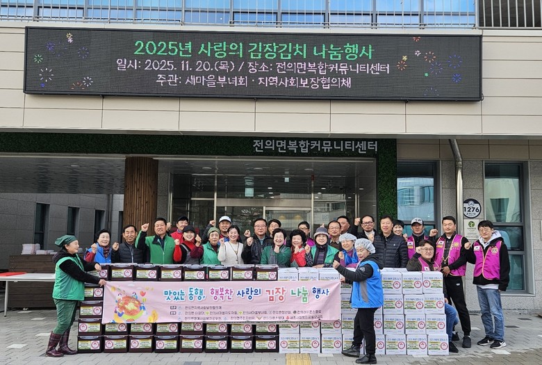 [세종 세계타임즈=이채봉 기자] 세종특별자치시 전의면지역사회보장협의체(공동위원장 송재숙·윤혜란)가 지난 19∼20일 전의면행정복지센터에서 ‘사랑의 김장나눔 행사’를 진행했다.