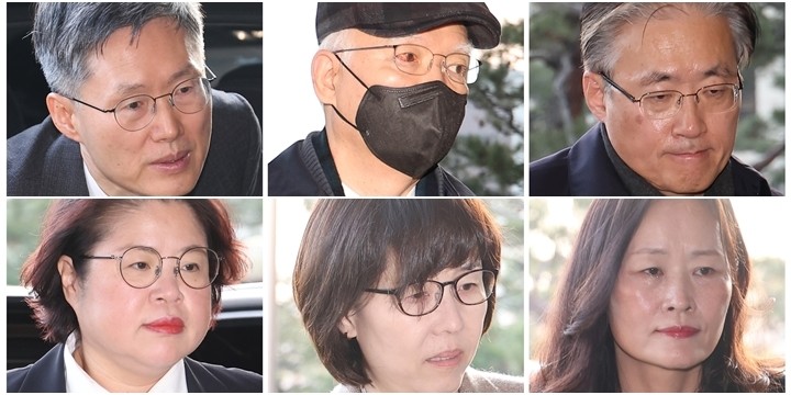 문형배 헌법재판소장 권한대행을 포함한 헌법재판관들이 26일 오전 서울 종로구 헌법재판소로 출근하고 있다. 왼쪽 위부터 시계방향으로 문 권한대행, 정형식, 김형두, 정정미, 이미선, 김복형 헌법재판관. 2024.12.26