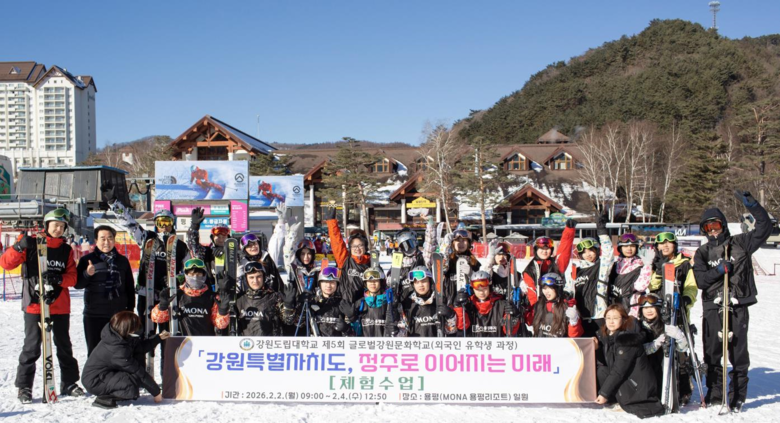 [강원도 세계타임즈=김민석 기자] 강원도립대학교(총장 최종균, 이하 대학)는 2월 2일부터 4일까지 2박 3일간 평창 용평리조트에서 도내 대학 외국인 유학생을 대상으로 ‘글로벌 강원문화학교 외국인 유학생 동계 스키캠프’를 성공적으로 운영했다.