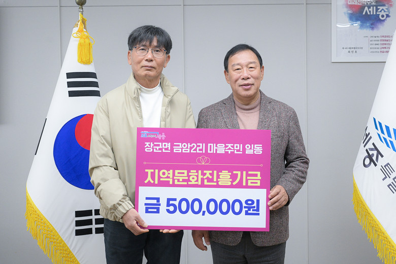 [세종 세계타임즈=이채봉 기자] 세종특별자치시(시장 최민호)가 21일 장군면 금암2리 마을주민들이 지역문화진흥기금 50만 원을 기부했다고 밝혔다.